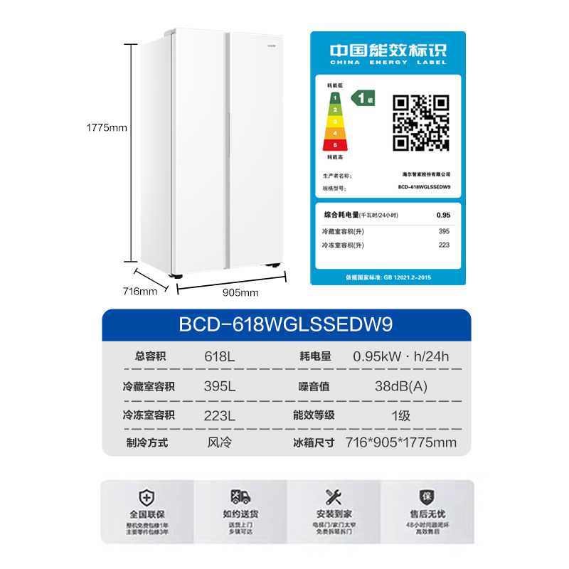 换新补贴海尔出品统帅618L双开对开门大容量无霜一级变频家用冰箱