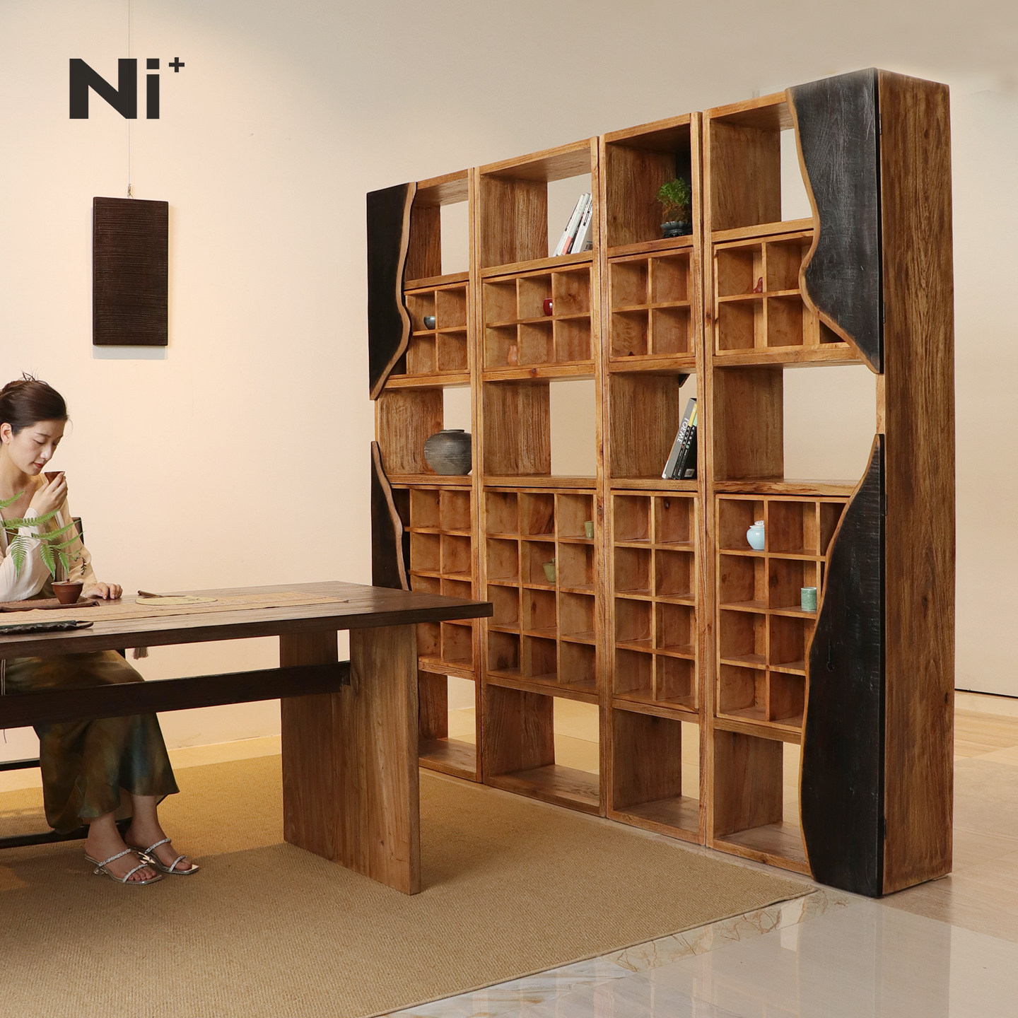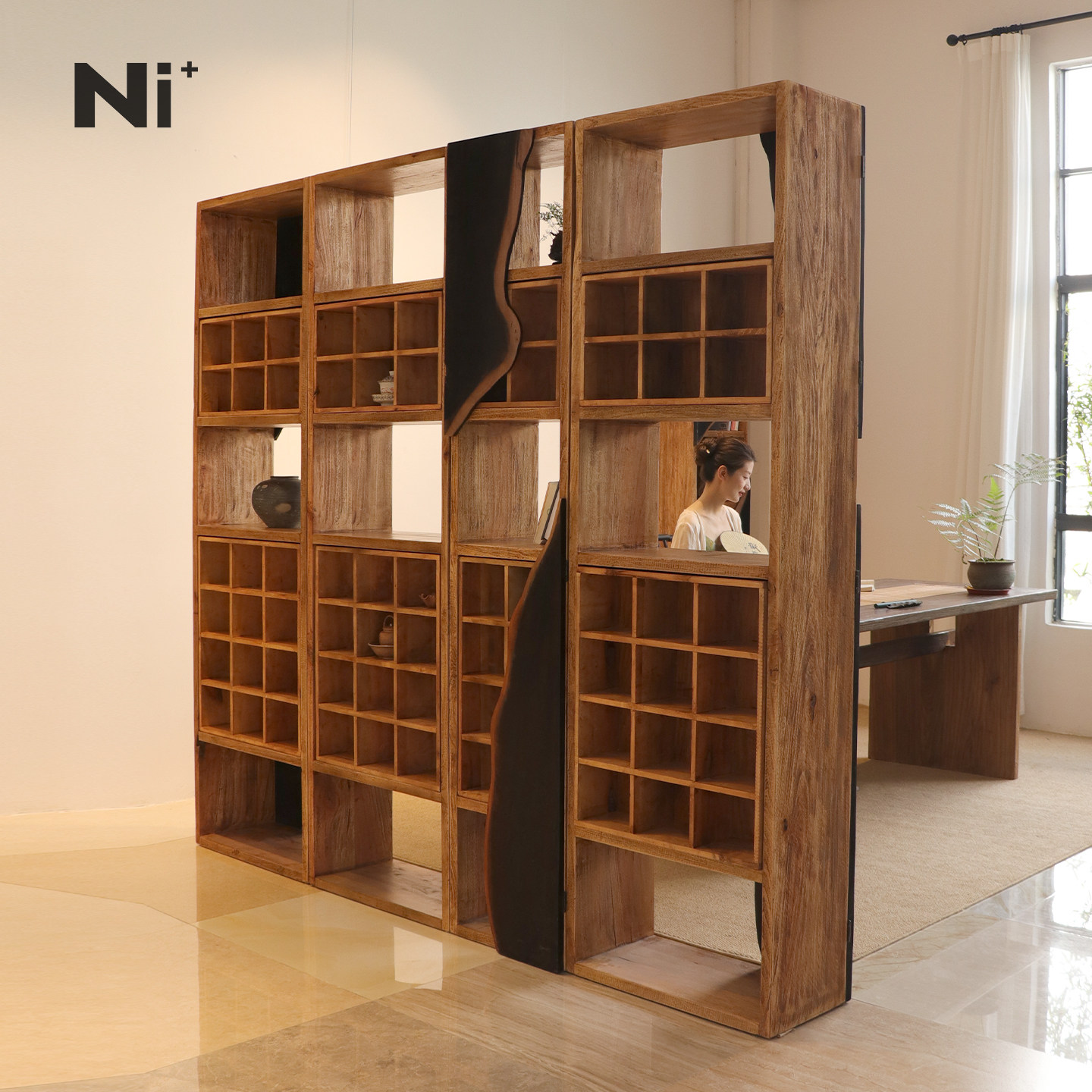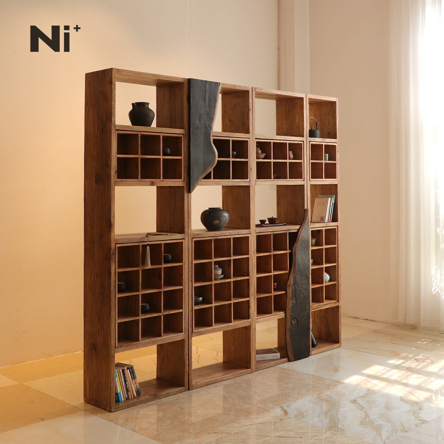 Ni尼家侘寂风实木博古架茶室茶杯架收纳架客厅隔断柜多宝阁置物架