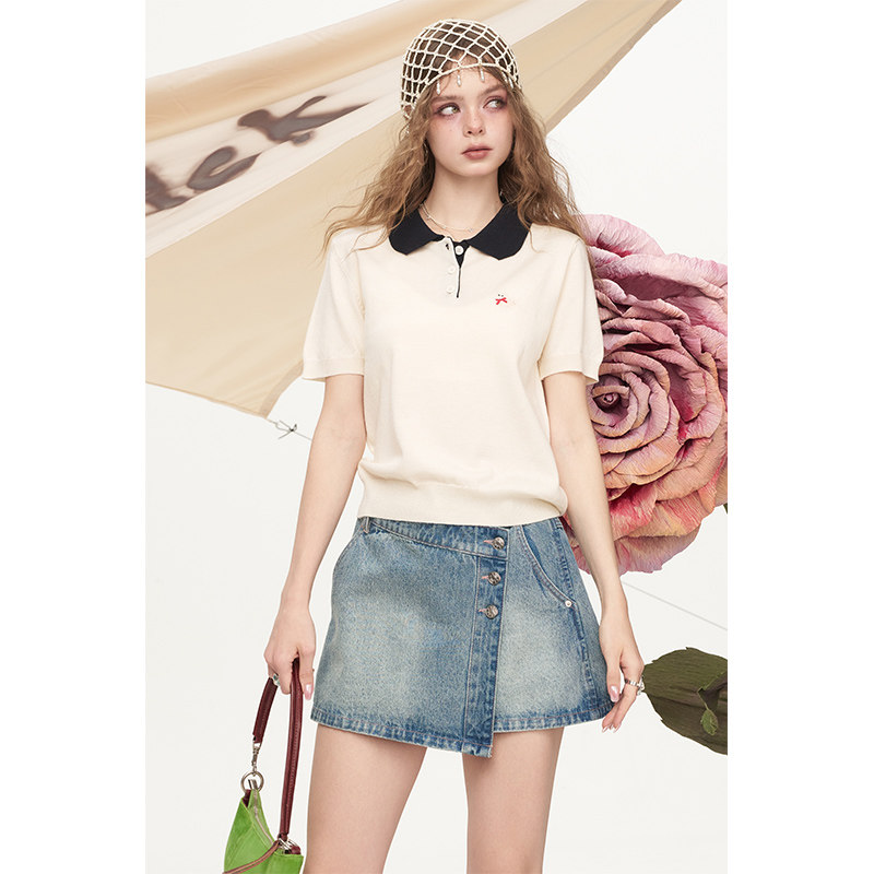 妖精的口袋不对称牛仔半身裙女2025年夏季新款高腰a字显瘦短裙子