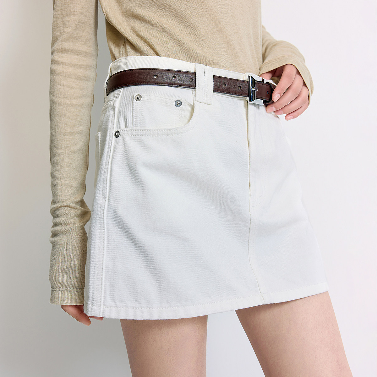 【季末折扣】欧时力100%棉牛仔半身裙短裙洗水复古A字2025早秋新