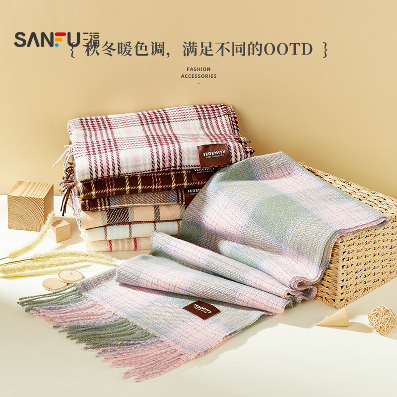 三福格子围巾韩系高级感保暖围脖披肩两用旅游外搭女冬季2025新款