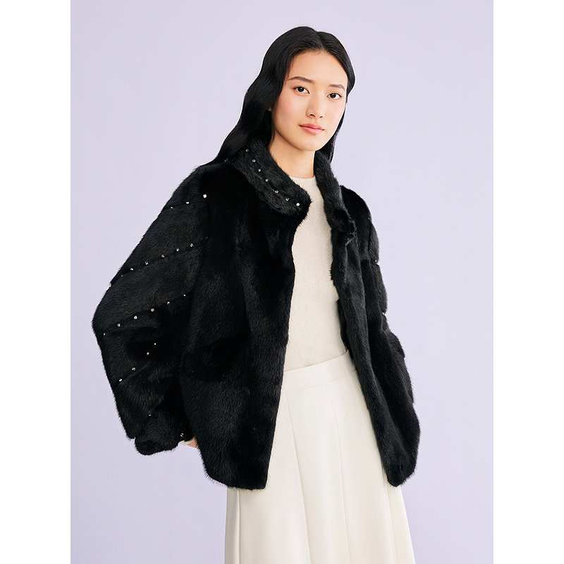 年轻妈妈冬装洋气立领短款皮草外套女皮毛一体水貂百搭上衣2024新
