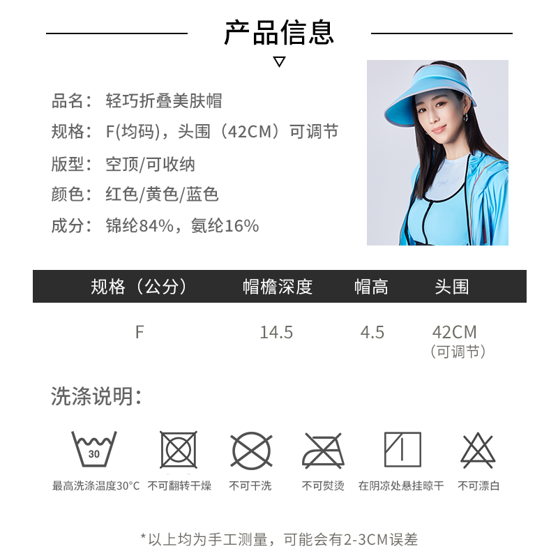 HOII/后益明星同款水晶轻巧折叠大帽檐张钧甯同款防晒帽夏遮阳女