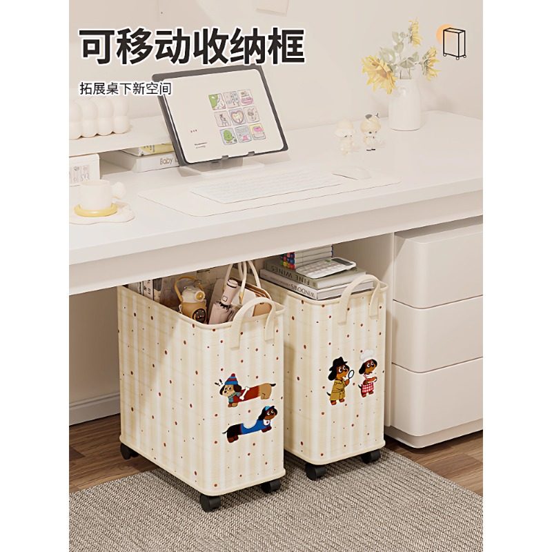 卡通小狗折叠收纳筐多功能手提收纳篮带轮家用宿舍桌可移动收纳箱