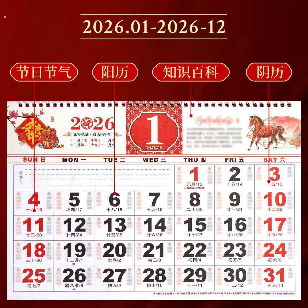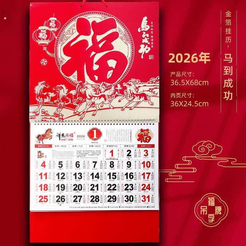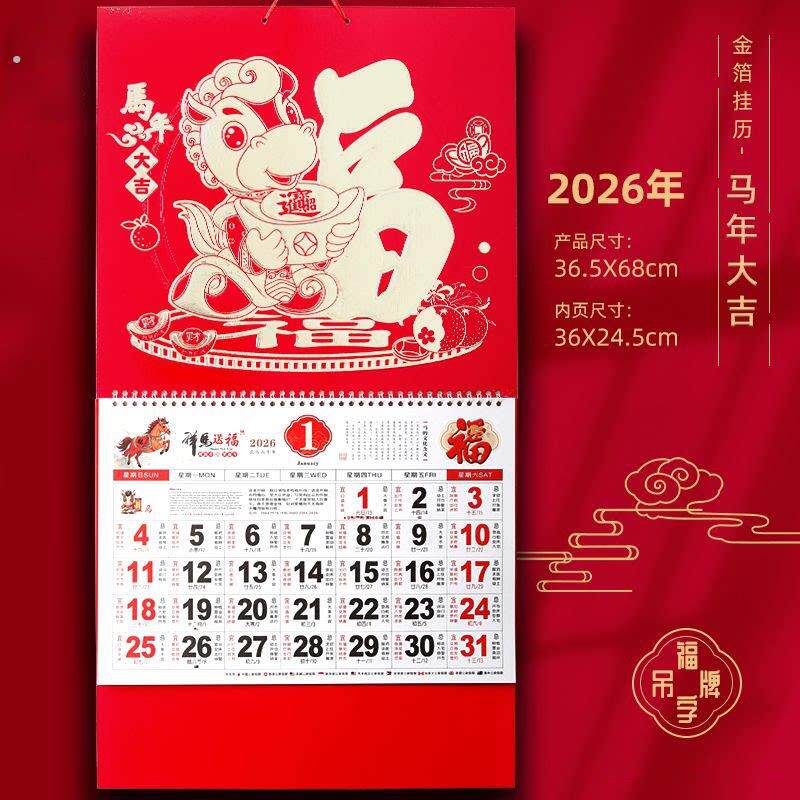 2026年新年挂历马年新款福字日历高档家用挂墙年历大号手撕老黄历