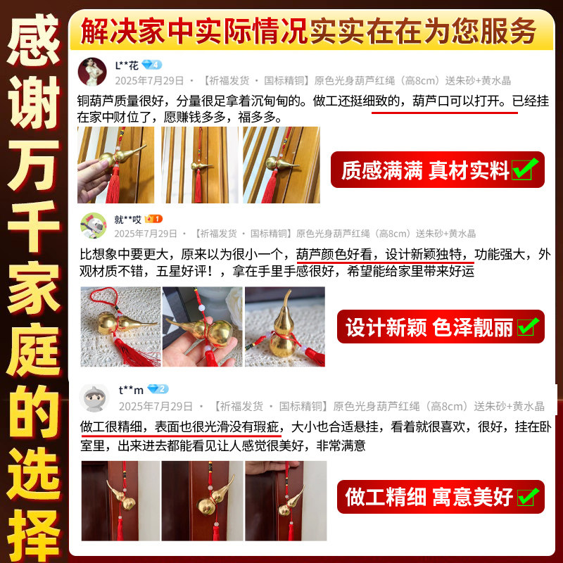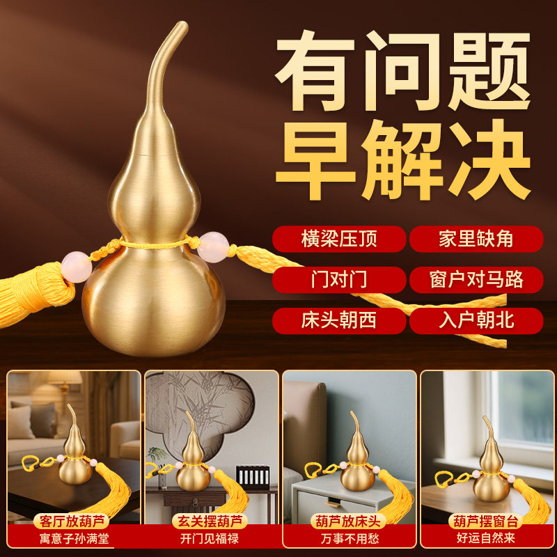 纯黄铜葫芦挂件开口空心吉祥客厅卧室家居乔迁铜葫芦挂摆件工艺品