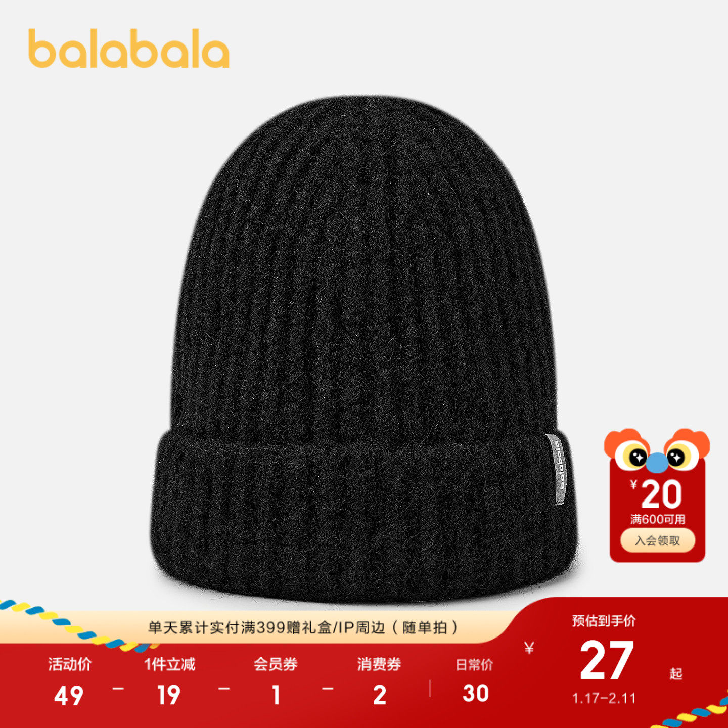 巴拉巴拉儿童帽子男女童比尼帽柔软舒适保暖冬季精致时尚简约外出