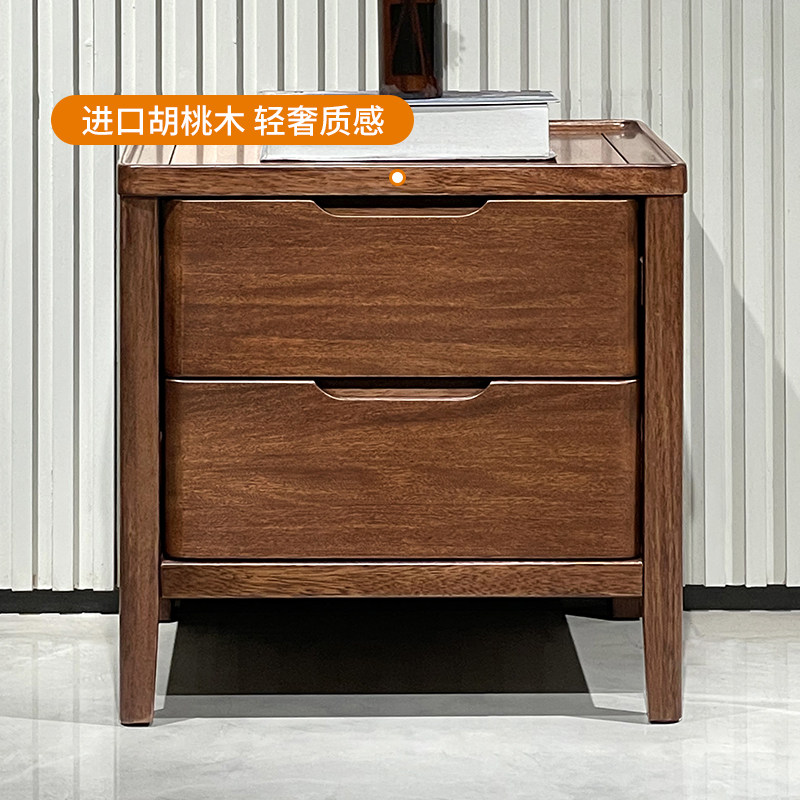 简约现代全实木床头柜胡桃木家具收纳双抽储物边柜卧室小户型
