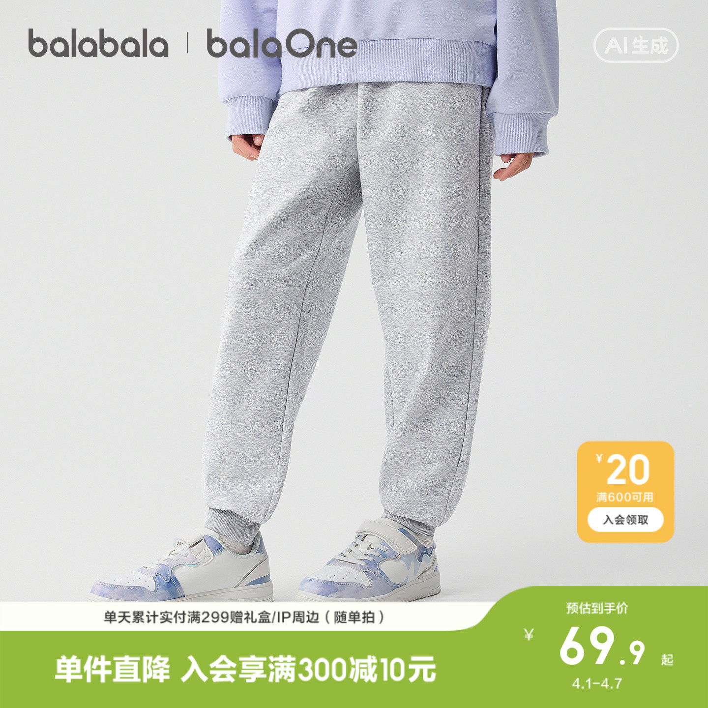 巴拉巴拉童装儿童裤子女童长裤2026新款春装百搭束脚裤休闲运动裤
