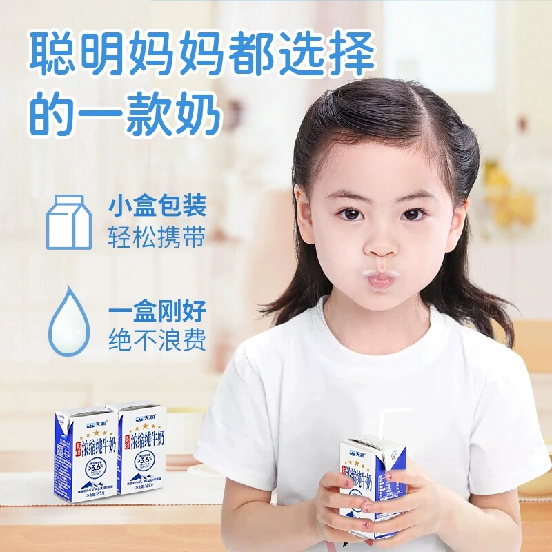 新疆天润浓缩纯牛奶整箱125g*20盒装营养早餐牛奶生牛乳全脂每日