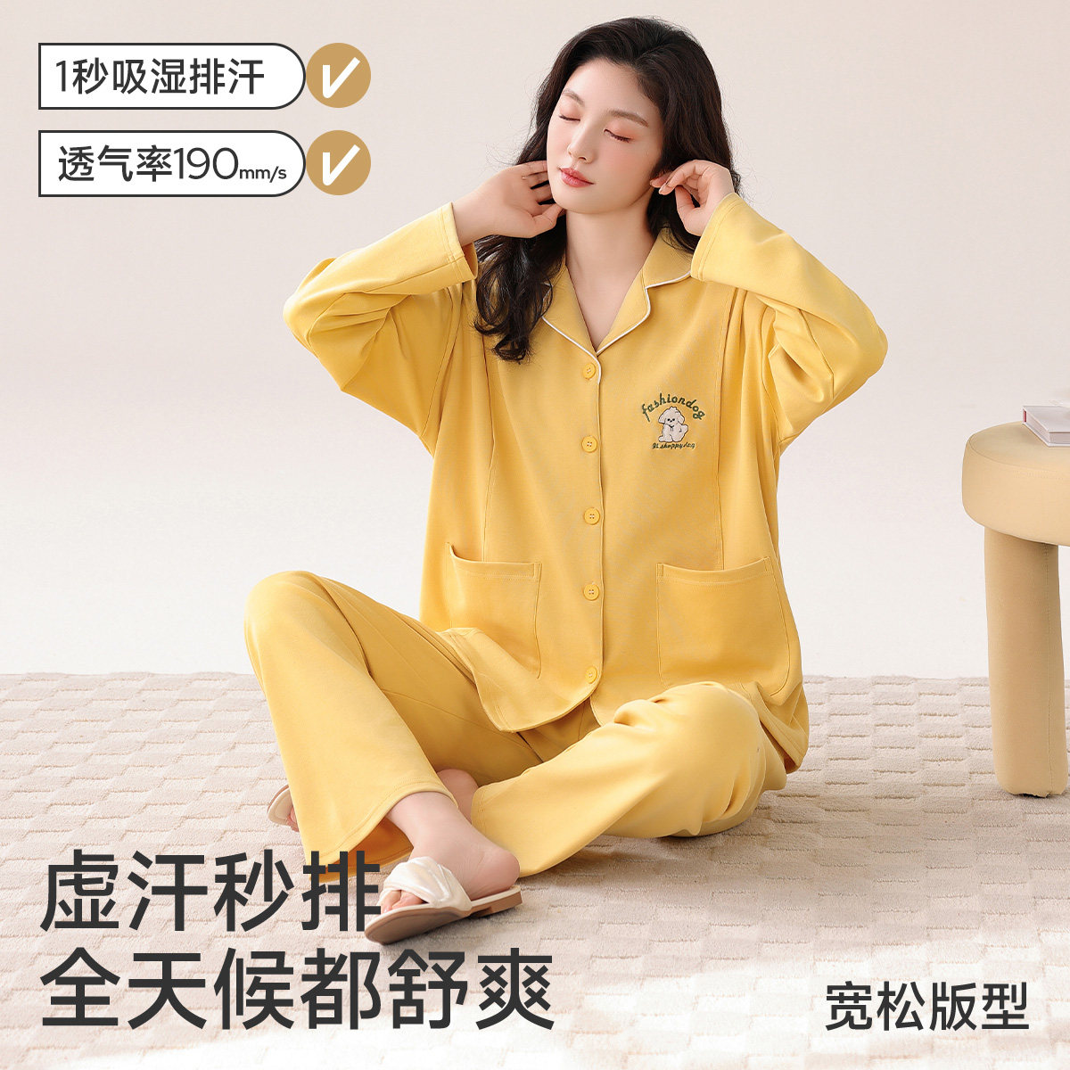 十月结晶兜兜鸭纯全棉吸汗月子服哺乳睡衣7A抗菌12月家居服女冬季