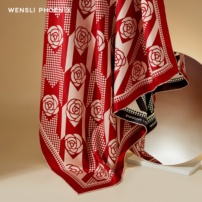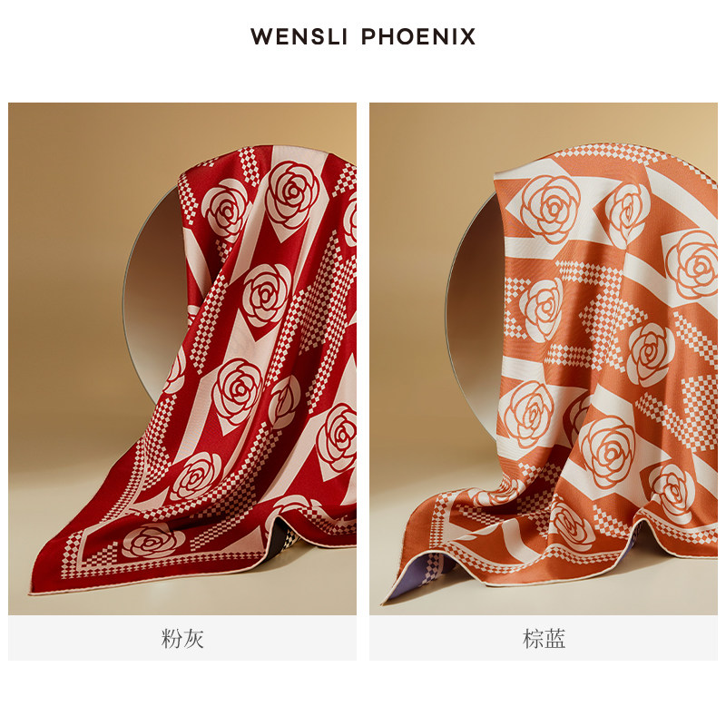【凤凰之家】丘妈同款丝巾万事利新品蚕丝真丝手卷大方巾玫瑰晨露