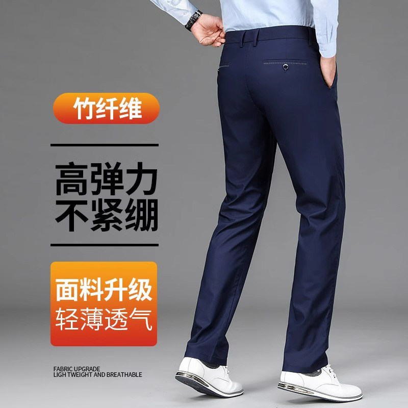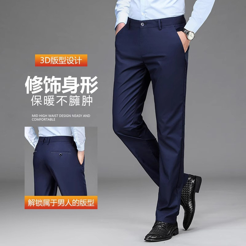 男士休闲裤春秋季2025新款直筒中年商务西装裤长裤子加绒防风薄款