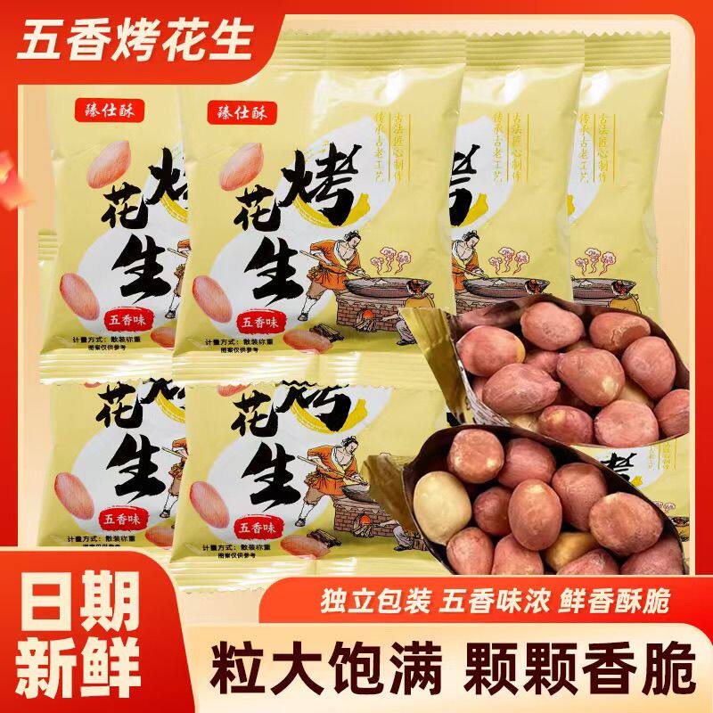 五香烤花生香酥咸香下酒花生米开袋即食办公室休闲解馋零食批发