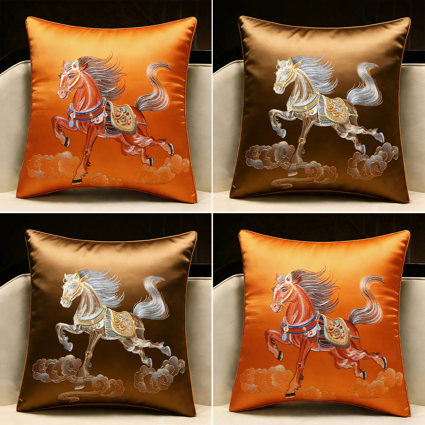 2026马年抱枕沙发客厅新中式刺绣靠枕套中国风靠垫床上靠背垫腰靠