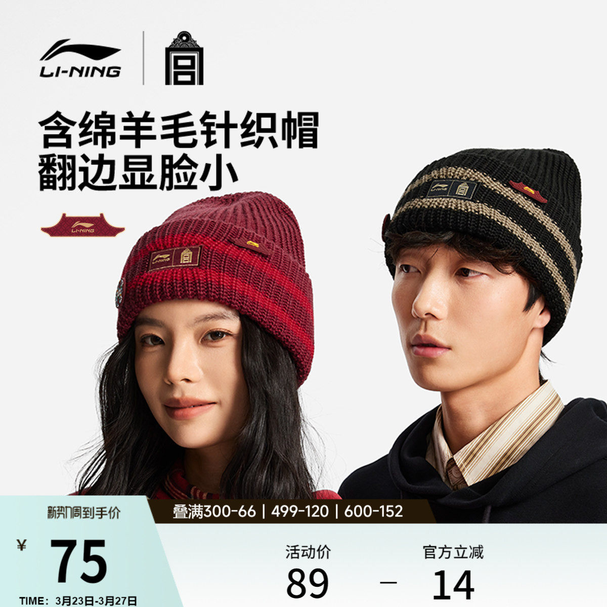 李宁中国文化故宫联名针织帽男女士2026新款春季红色毛线运动帽子