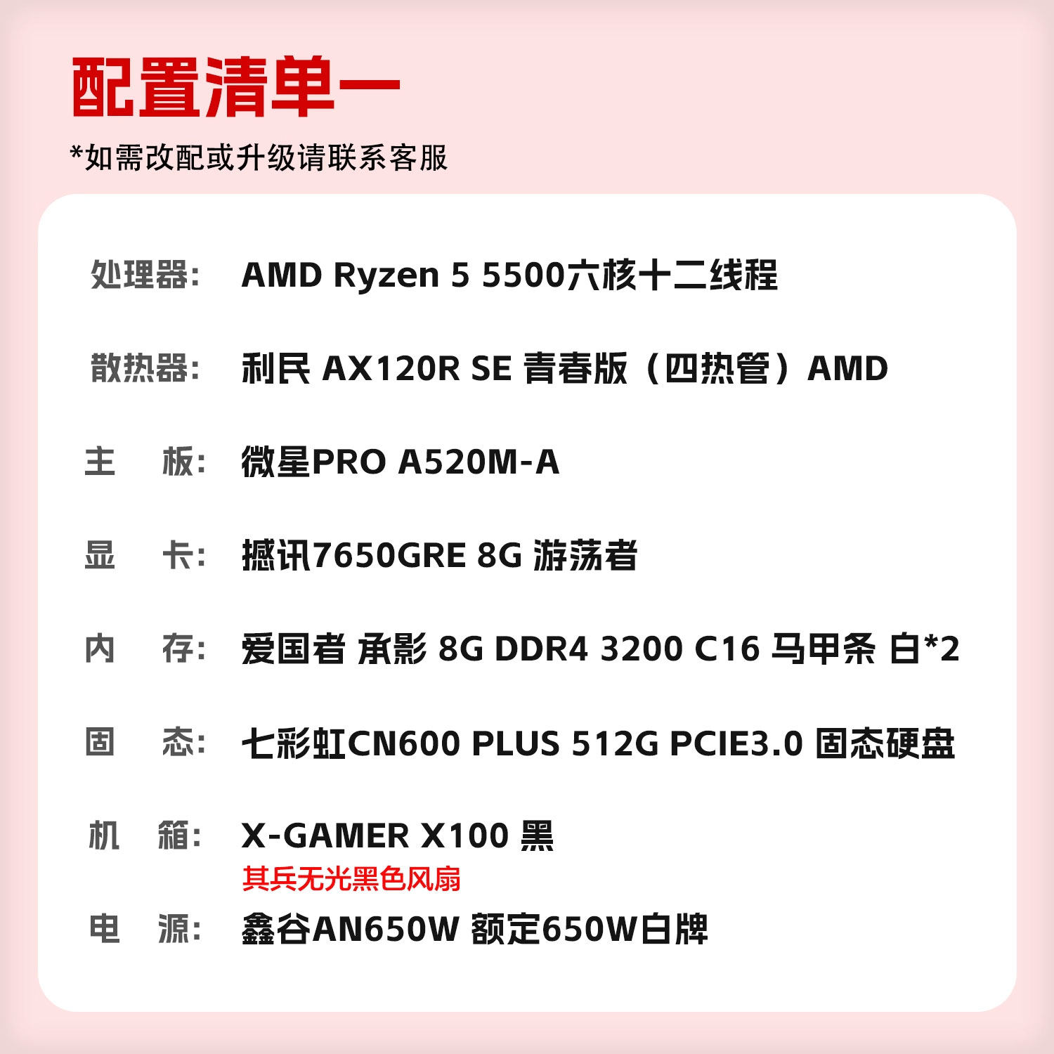 5500+7650GRE 电竞游戏台式DIY电脑主机