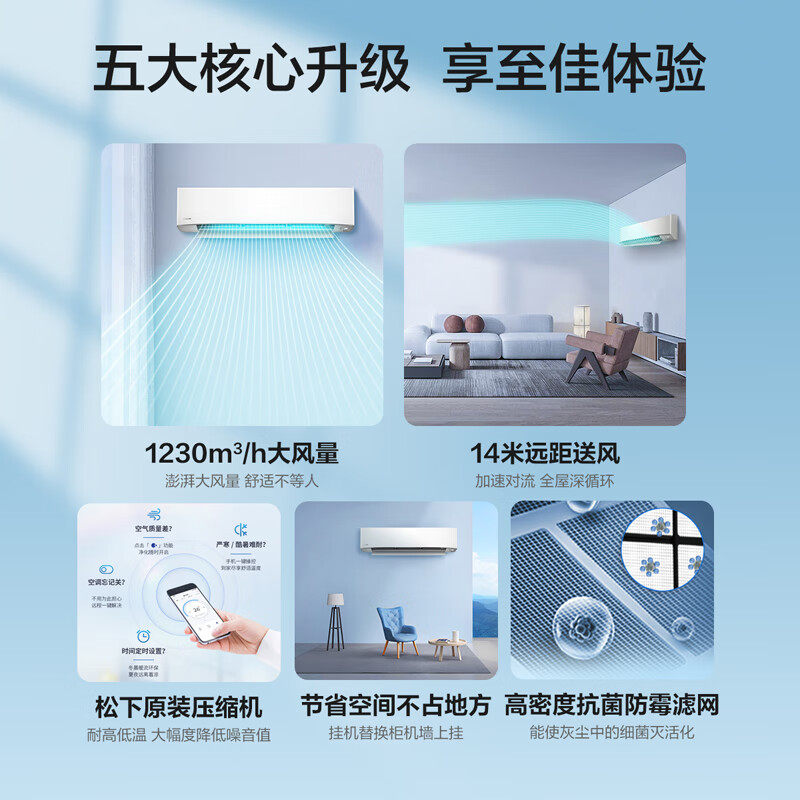 松下一级冷暖变频空调挂机客厅14米送风纳诺怡WiFi大3匹EW27KU10