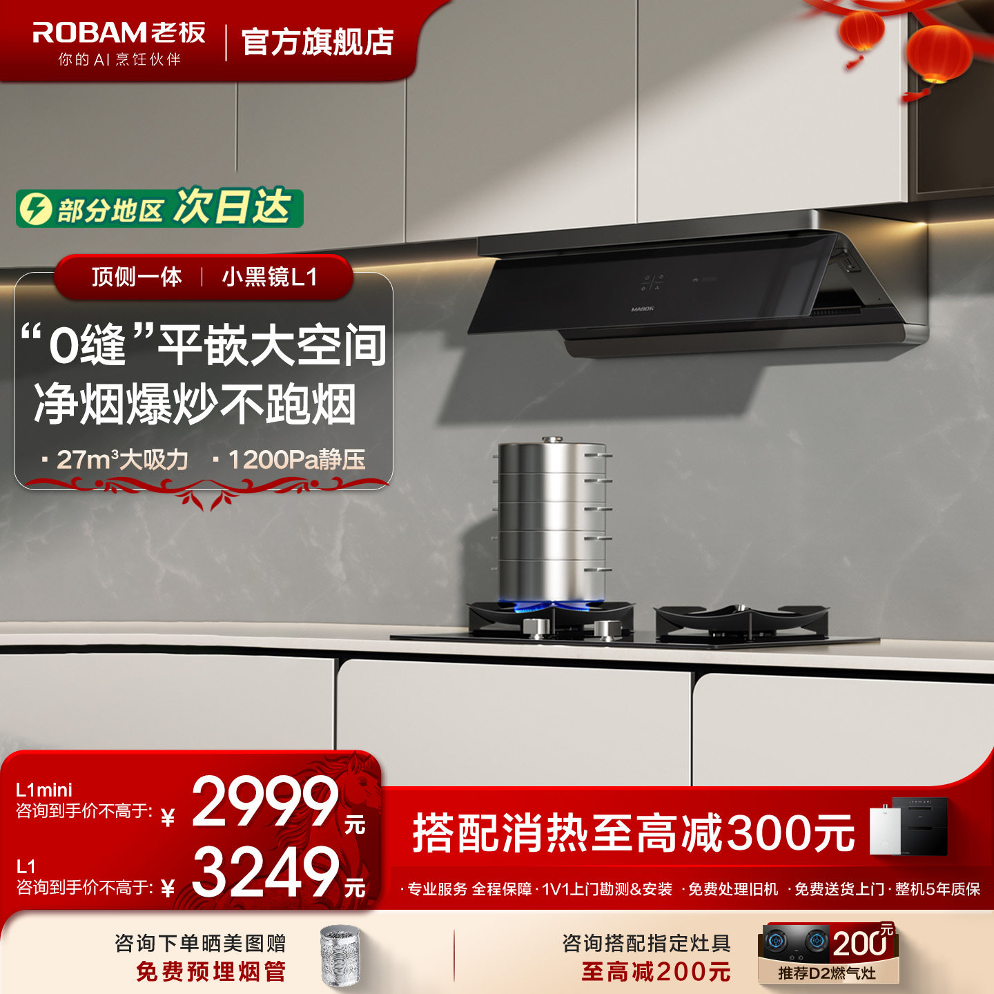 老板小黑镜L1/L3/L1mini顶侧一体抽吸油烟机燃气灶官方旗舰店正品