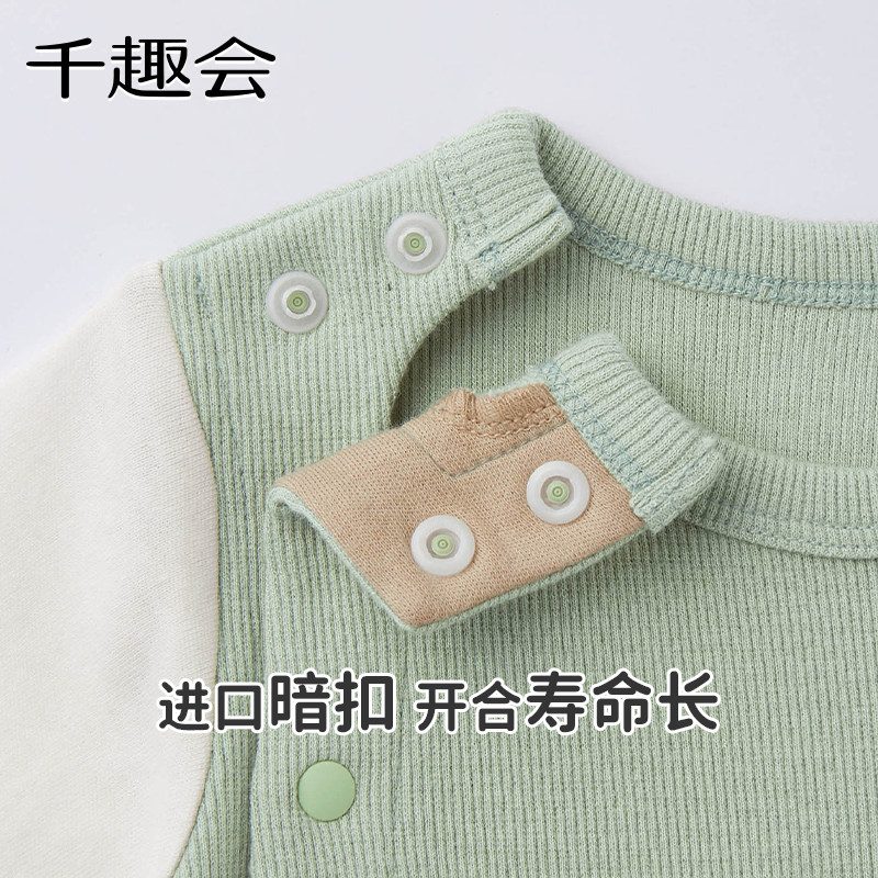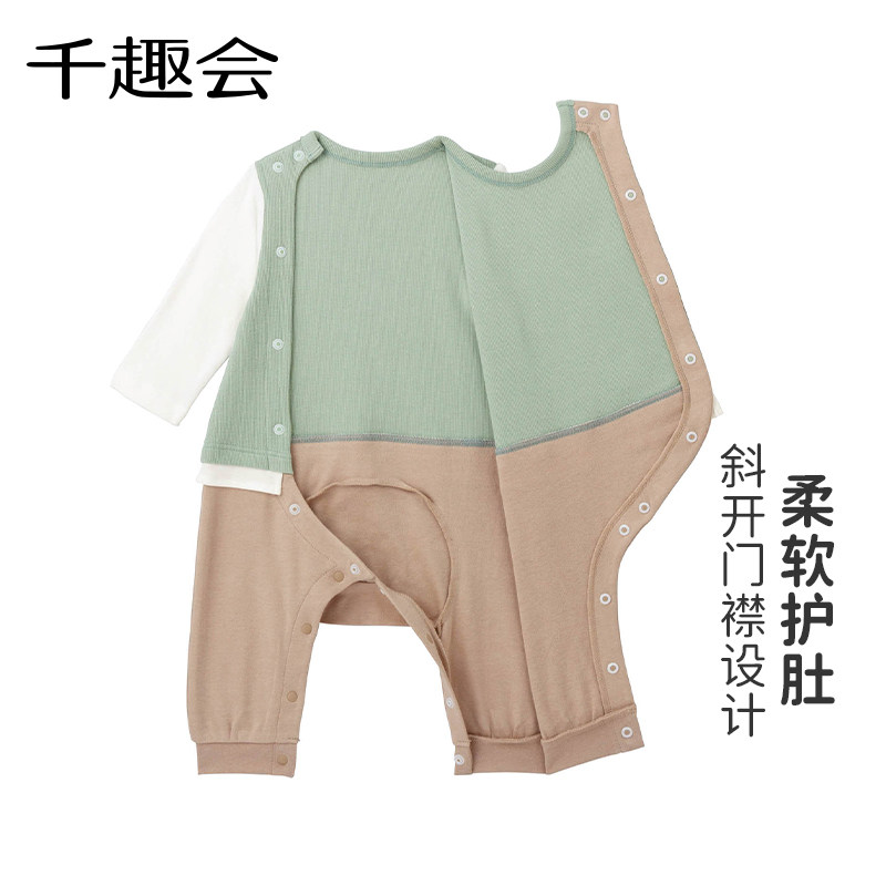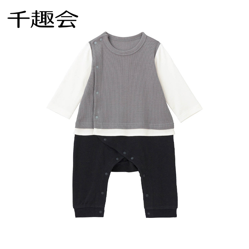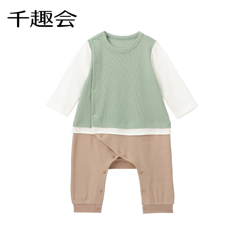 千趣会童装春秋款婴童爬服时尚叠穿风男女宝宝长袖长裤连体衣