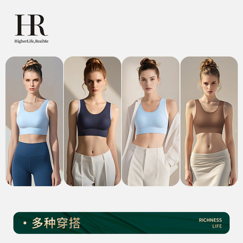 HR赫莲娜轻运动文胸背心内衣夏季防下垂收副乳撞色瑜伽健身文胸女