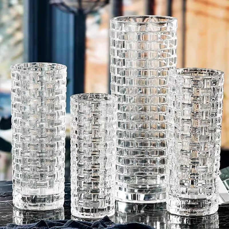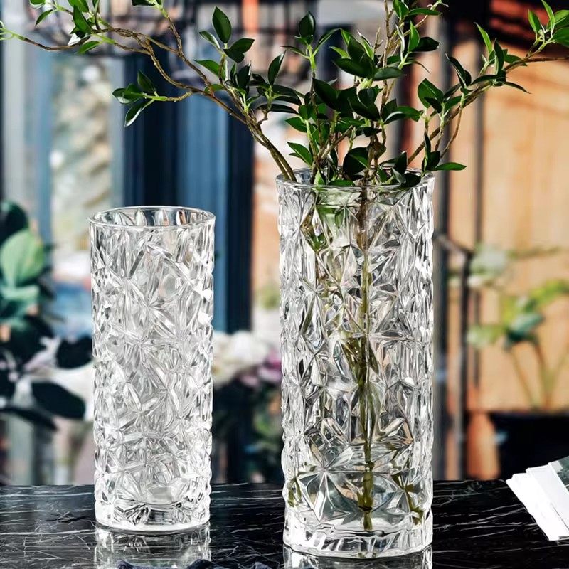 轻奢玻璃花瓶直筒透明水养鲜花百合富贵竹ins高颜值客厅装饰摆件