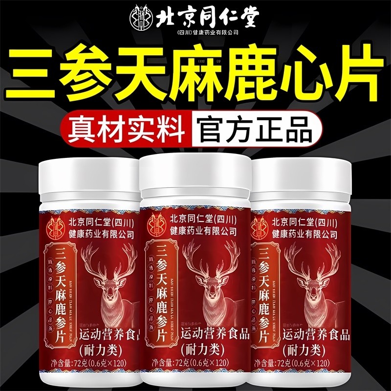 北京同仁堂三参天麻鹿心片官方旗舰店正品露草本植物Z24人参健康