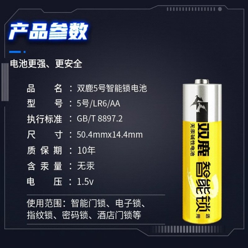 双鹿密码锁指纹锁2代升级款5号智能门锁电子锁专用电池 LR6碱性家用防盗门智能锁1.5V电池儿童玩具10年不漏液