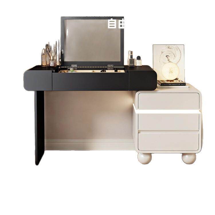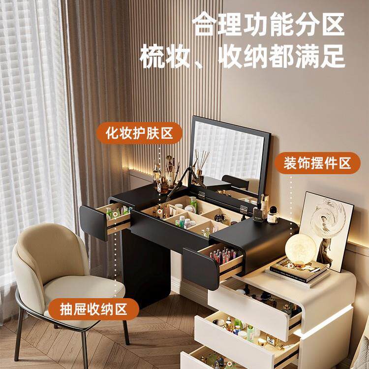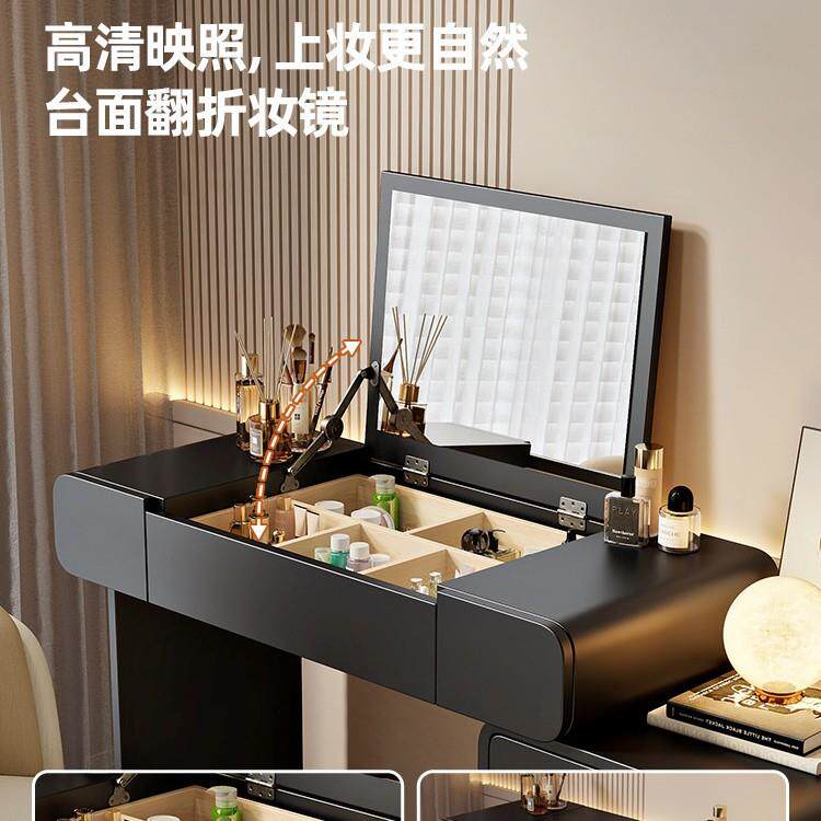 2025新款梳妆台卧室简约现代翻盖镜子可隐藏实木化妆桌斗柜一体