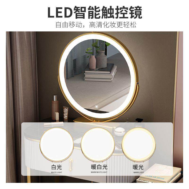 岩板梳妆台床头收纳柜一体女卧室化妆桌小户型多功能极简智能镜
