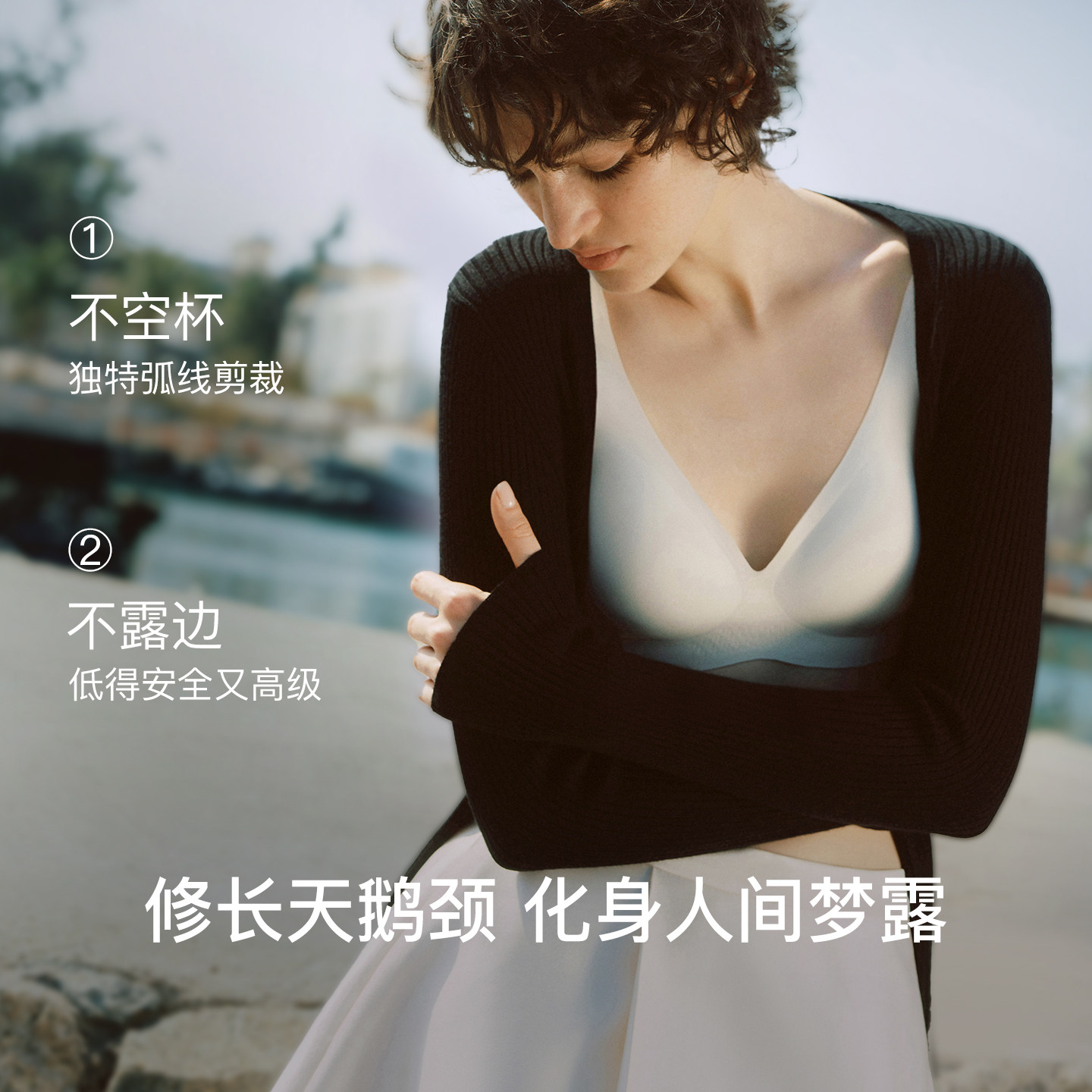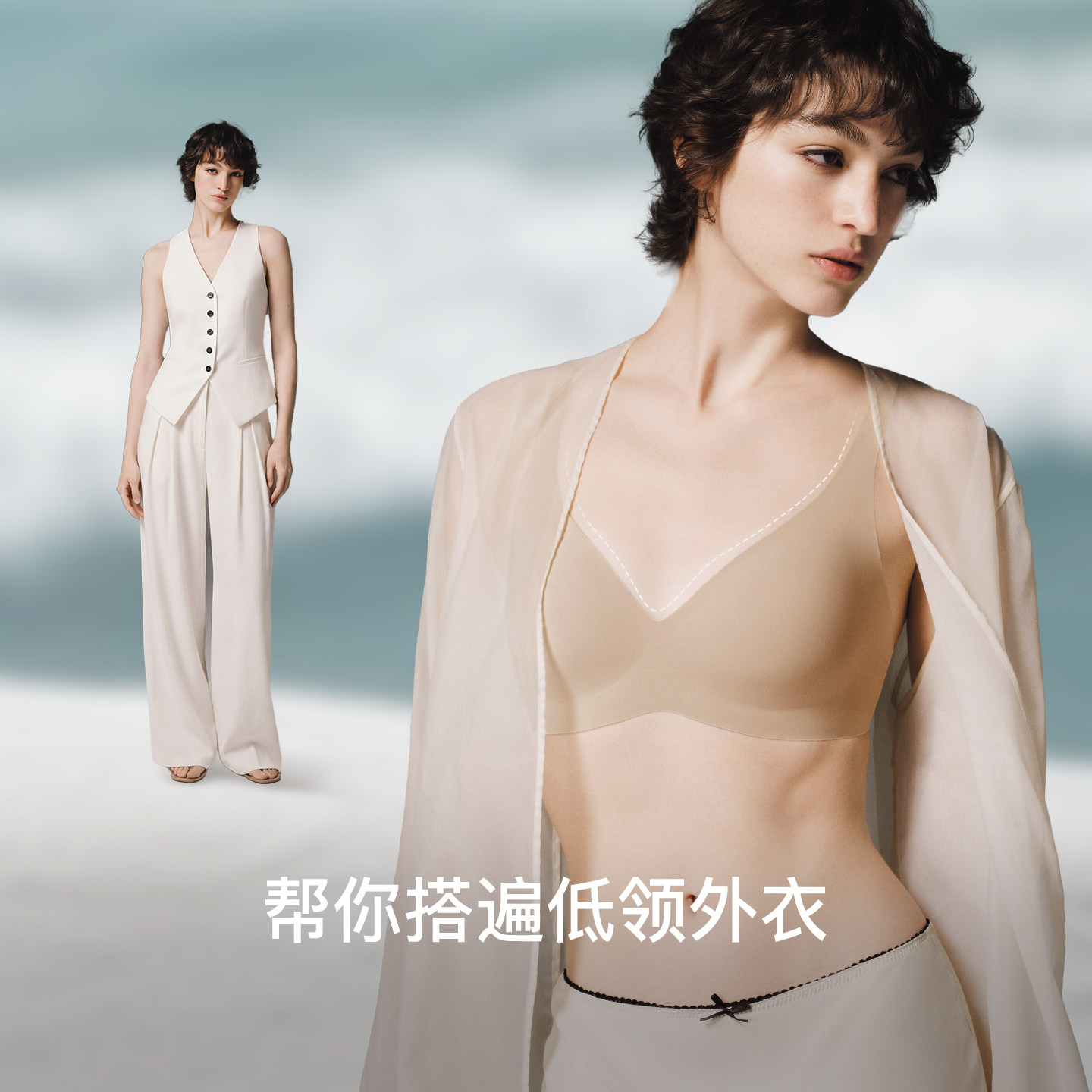 ubras无尺码梦露领深v内衣小奶皮性感无痕隐形吊带背心新款文胸罩