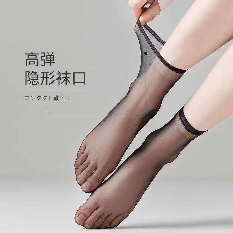 丝袜女隐形水晶袜防滑脚底按摩袜夏季薄款透明短袜防勾丝中筒女袜
