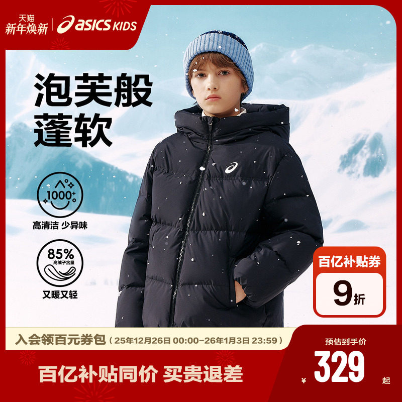 ASICS/亚瑟士童装25年冬季中大童宽松短款泡芙羽绒服外套轻薄舒适