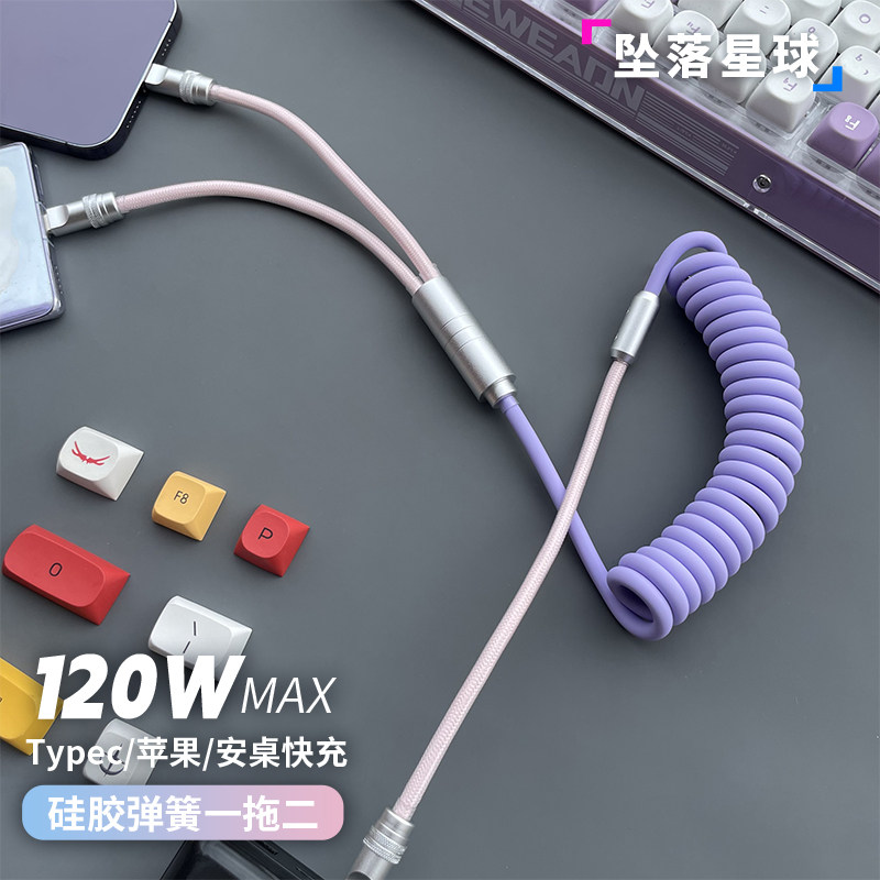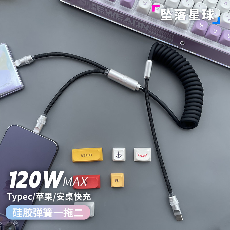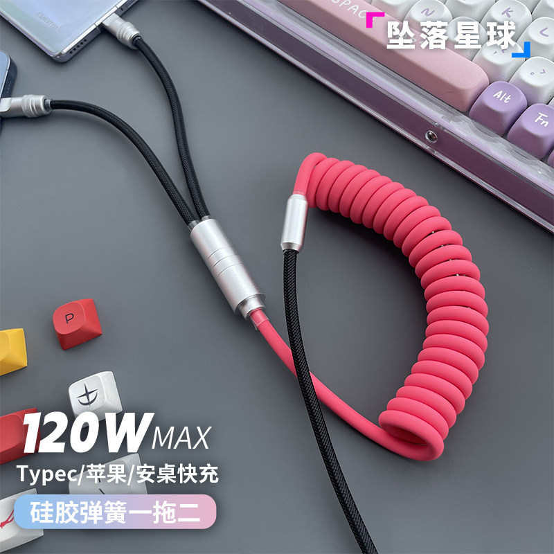 车载充电线适用苹果iPhone17Pro华为一拖二carplay伸缩车载数据线