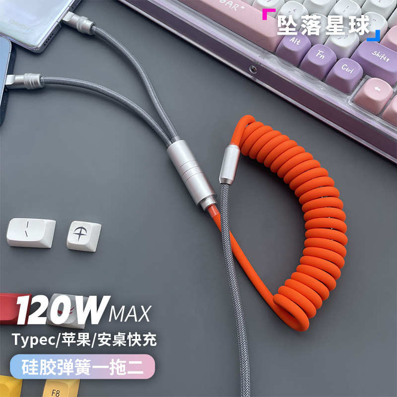 绿联弹簧伸缩数据线编织type-c适用华为小米安卓手机tpyec超级快充HiCar车载投屏键盘航插6a5a摩托USB转充电