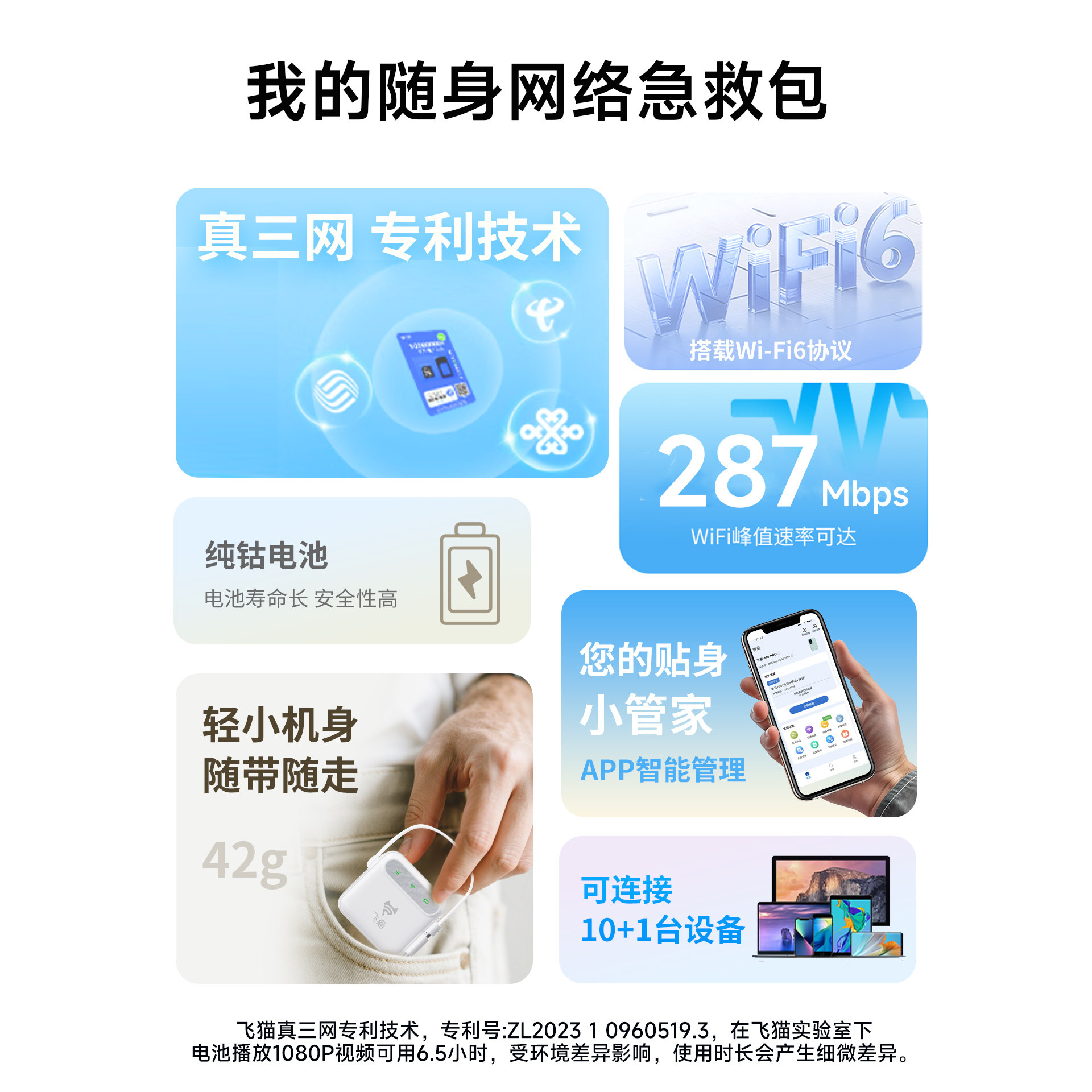 飞猫M2随身wifi移动网络4g三网通2025全新WIFI6新款免插卡无线上网便携式设备高速上网通用车载飞猫智联M2
