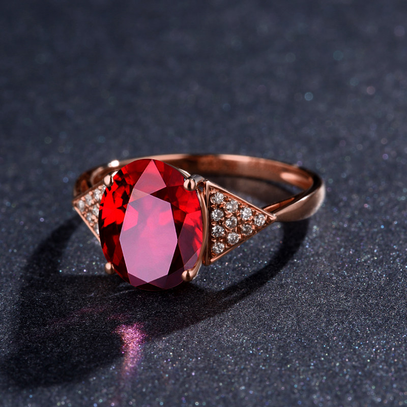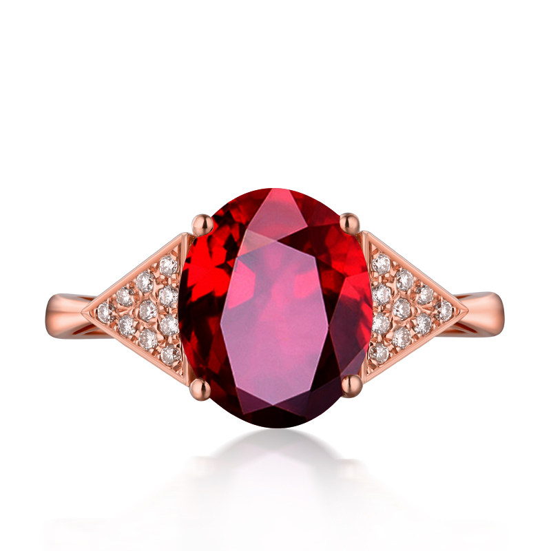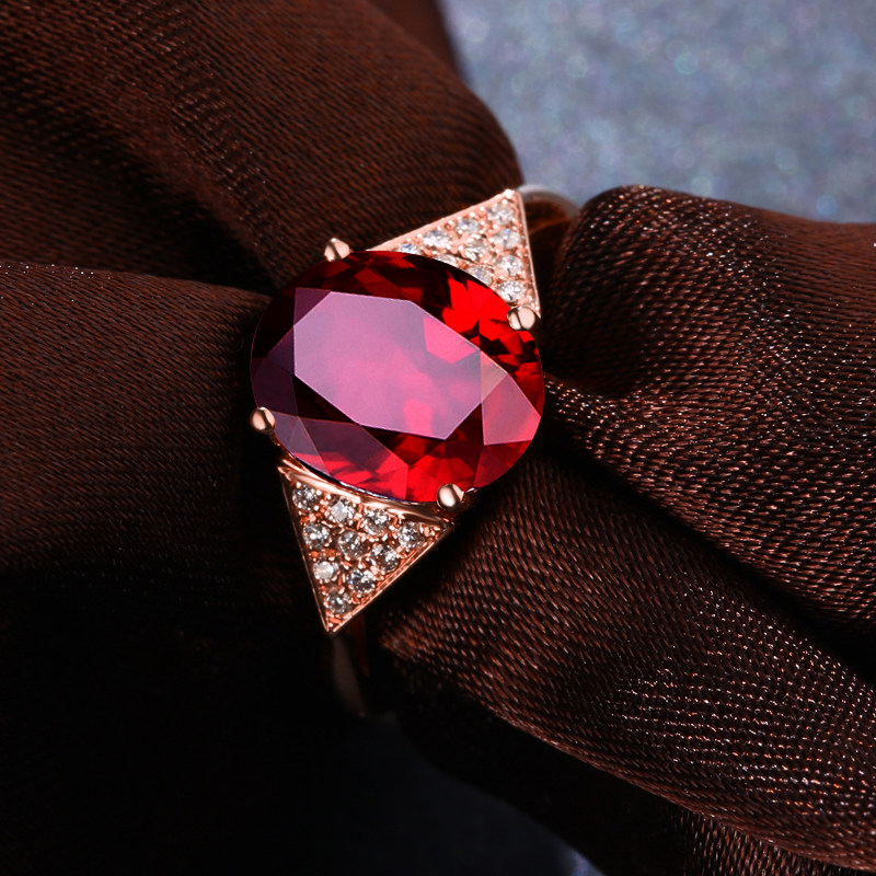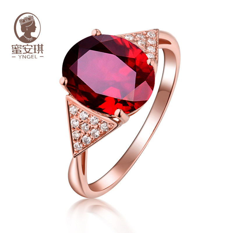 Yngel/蜜安琪0.57克拉天然红宝石戒指女18K玫瑰金镶嵌钻石手饰