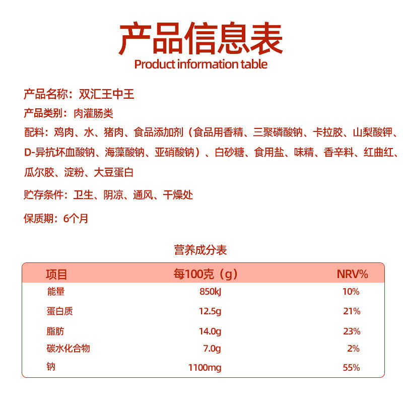 【下拉详情领优惠】双汇王中王火腿肠香肠肉类零食速食配泡面零食