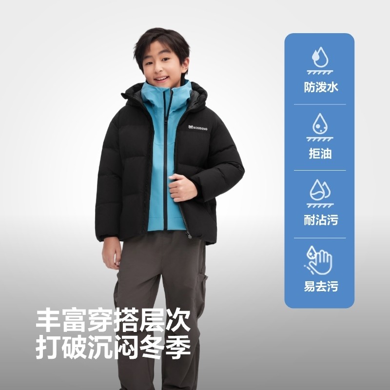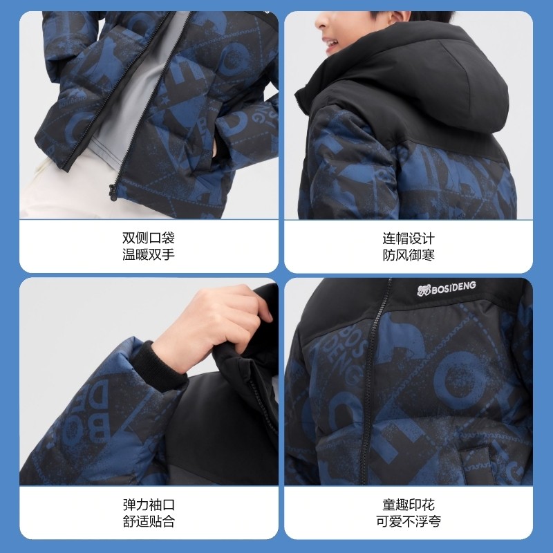【抗菌绒】波司登25冬童新款新年运动童趣潮流连帽纳米四防羽绒服