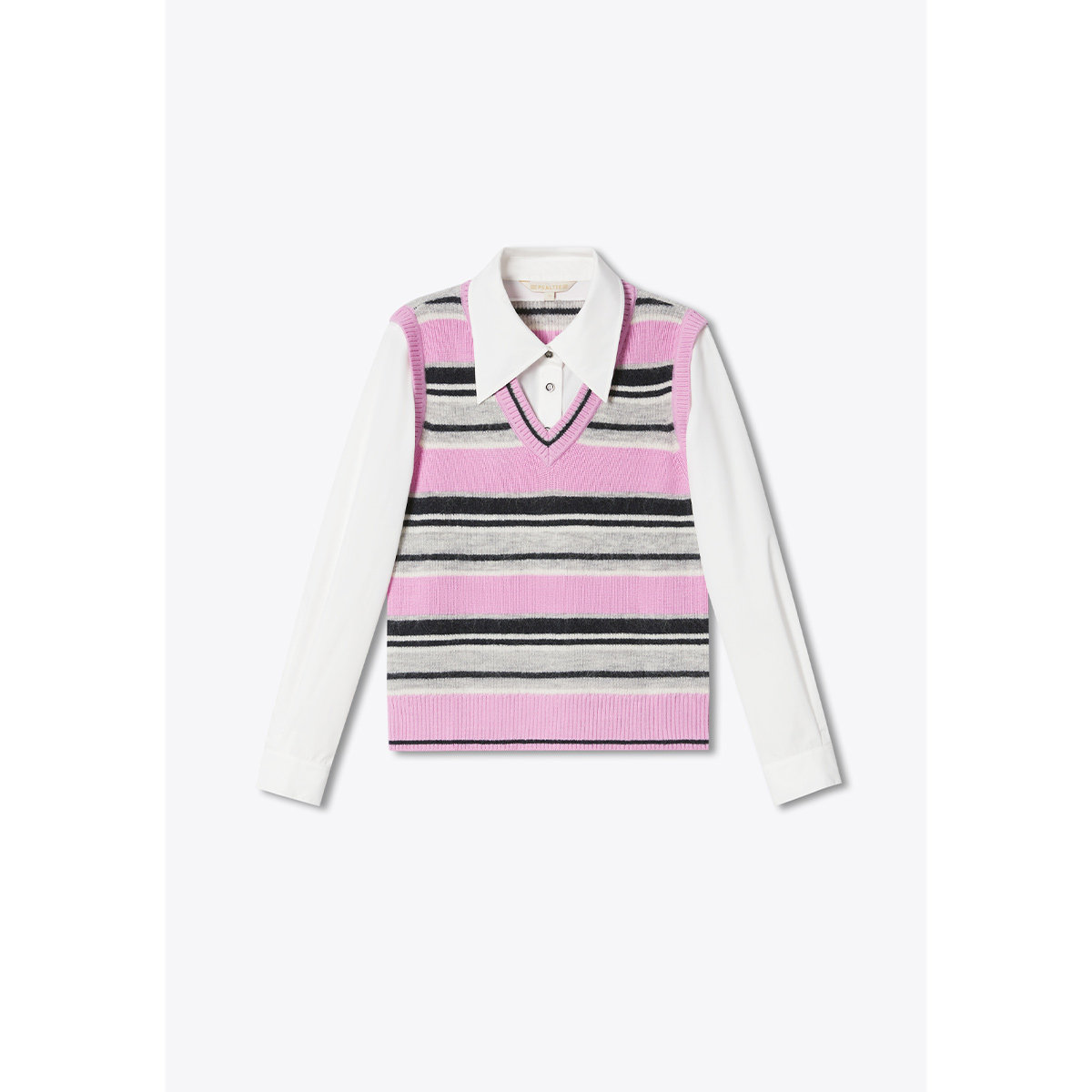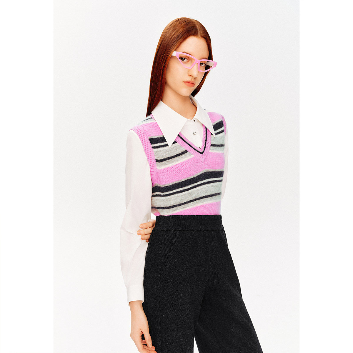 【马海毛】PSALTER诗篇羊毛假两件学院风条纹毛针织衫冬款