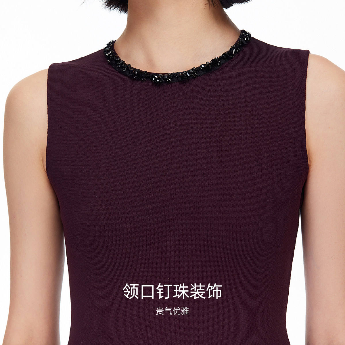 Vero Moda连衣裙2025秋季新款钉珠纯色无袖收腰中长裙325346009