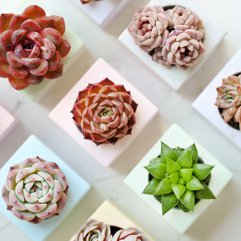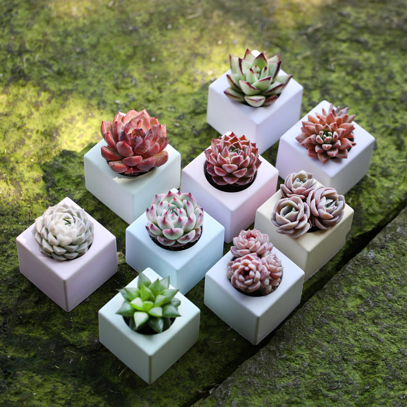 多肉植物彩色小方块花盆桌面花卉绿植组合好养含盆带土室内盆栽