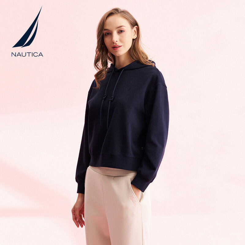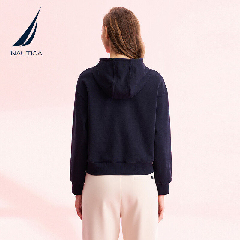 NAUTICA/诺帝卡女装春秋款棉质混纺带弹透气连帽针织卫衣43KO03