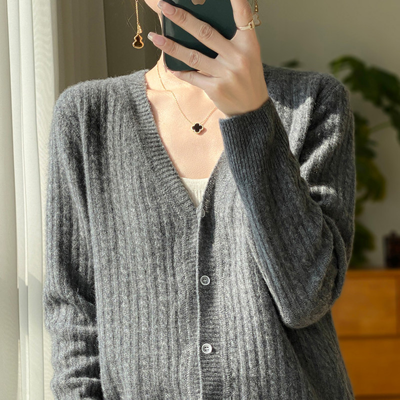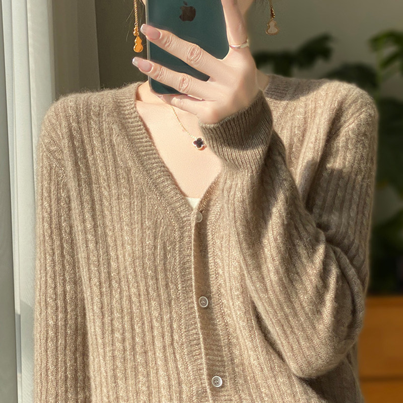 新款羊毛开衫外套女针织打底衫V领2025年春季羊绒外搭短款毛衣女