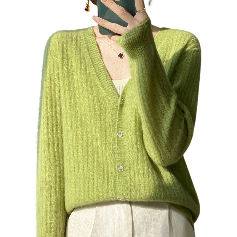 鄂尔多斯市断码羊绒开衫女春秋新款宽松毛衣外套翻领针织羊毛衫