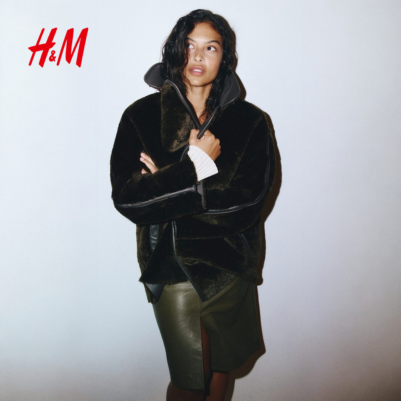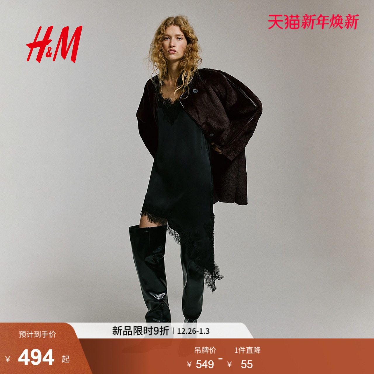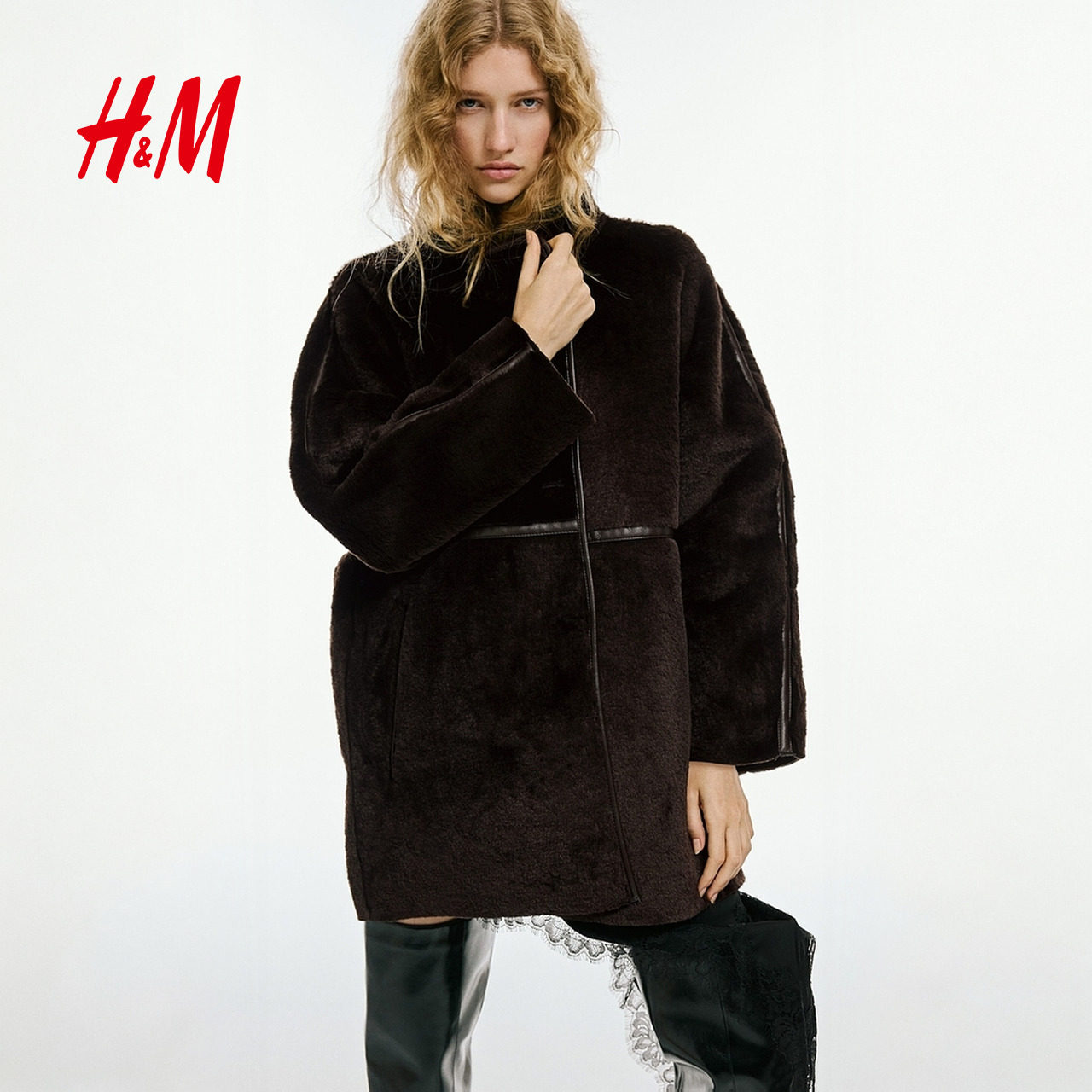 HM女装仿皮草2025冬新款加绒加厚保暖中长款毛茸大衣外套1284946