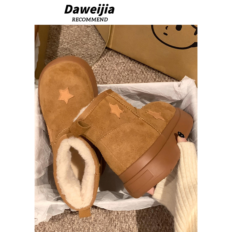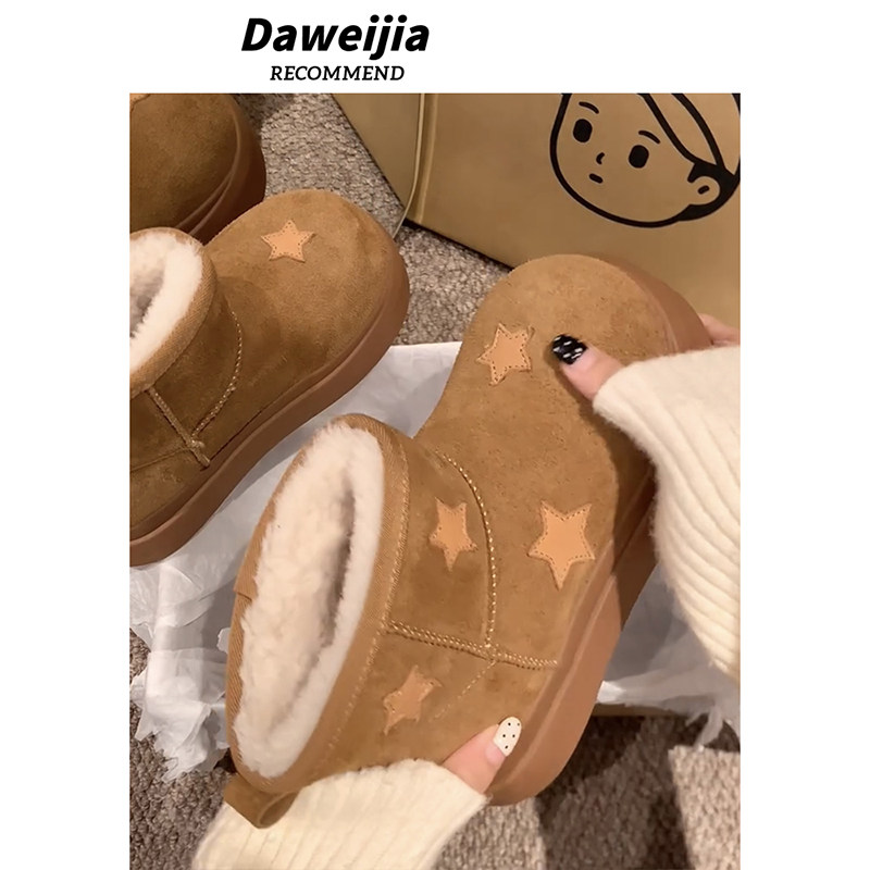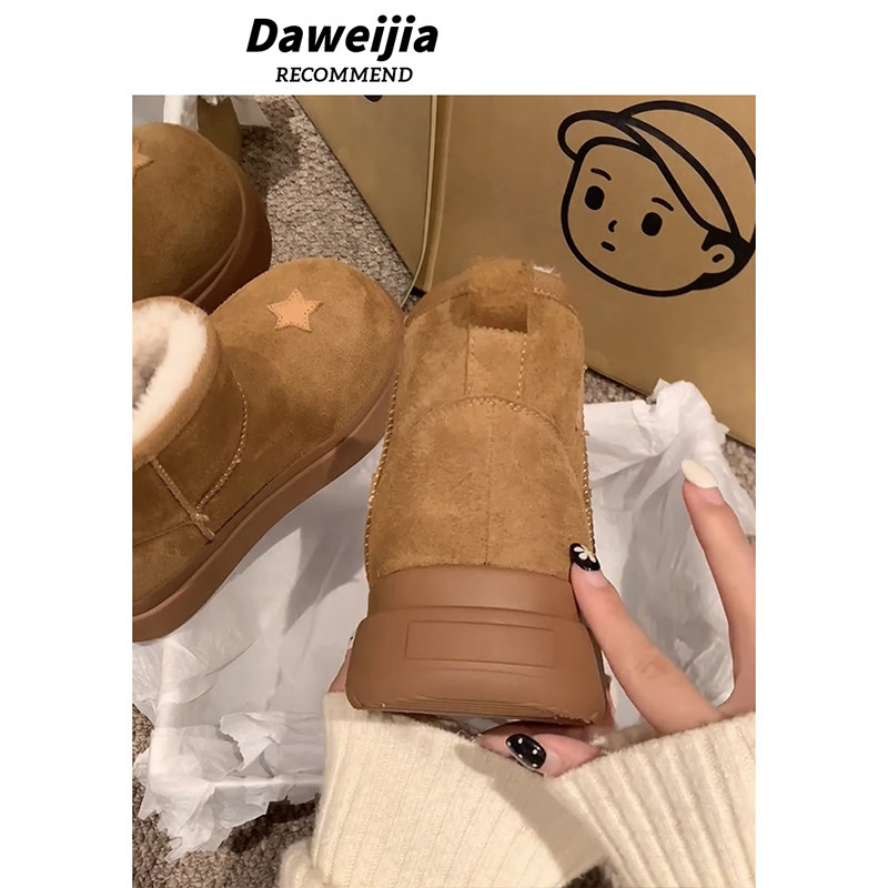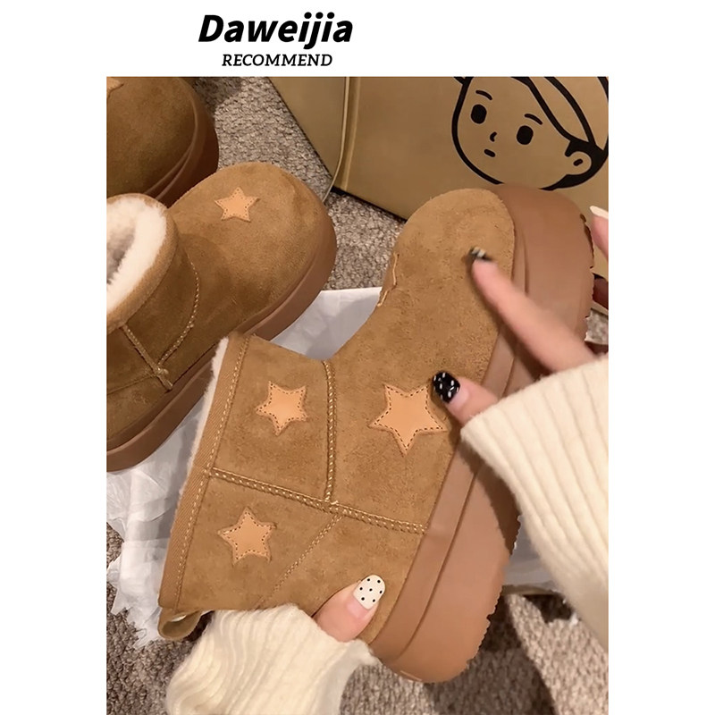 星星雪地靴女款2025新款冬季加绒大头面包鞋保暖短靴厚底雪地棉鞋
