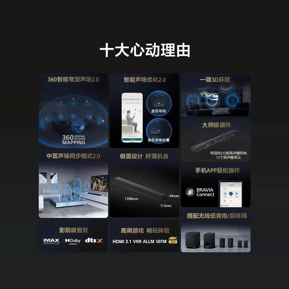 索尼HT-A9000全景声单独回音壁 360智能穹顶 4K/120Hz 家庭影院
