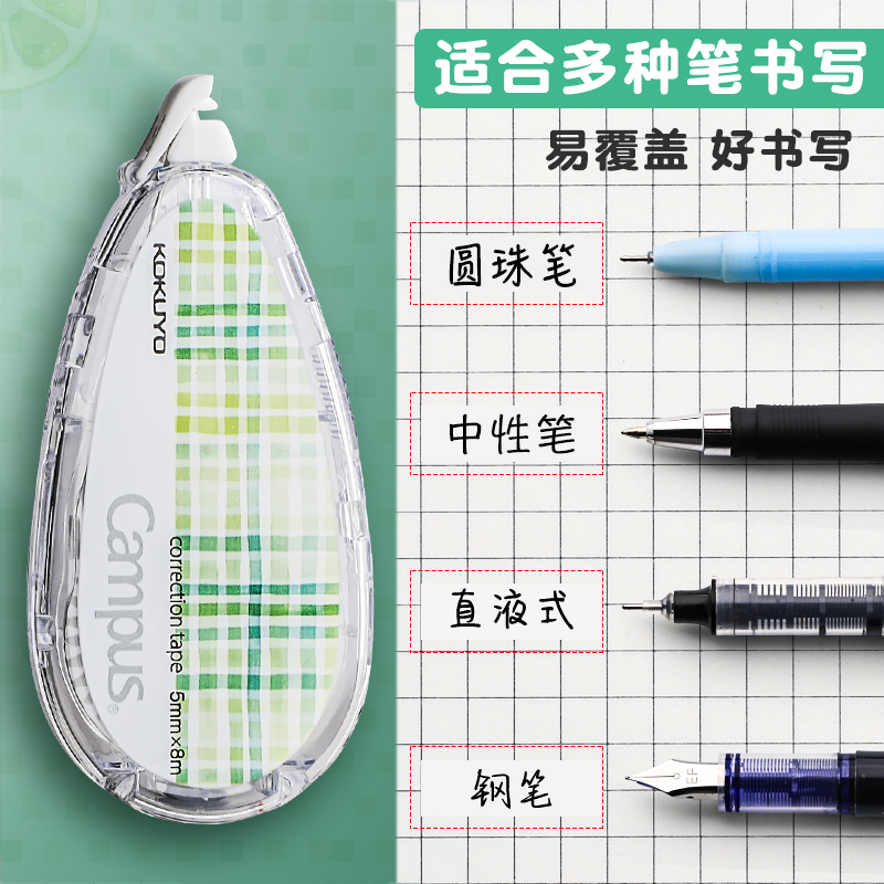 日本国誉KOKUYO原纸色修正带campus水彩絮语隐形可换替芯学生用涂改带初中生女生高颜值改正带小学生改错带