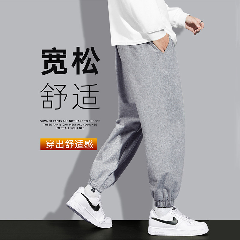 裤子男春秋韩版潮流束脚春秋卫裤棉质宽松运动裤男士宽松休闲长裤